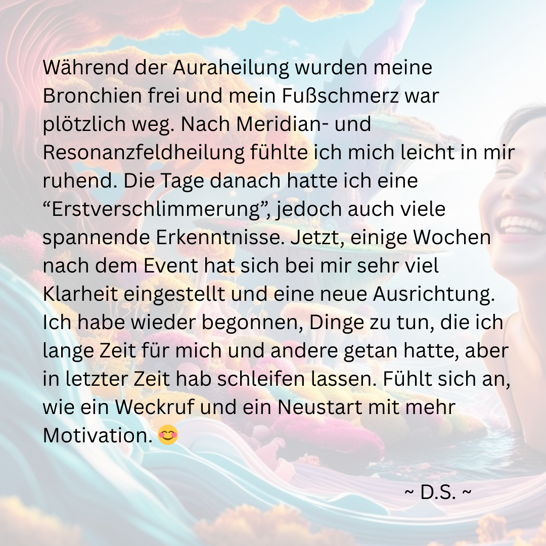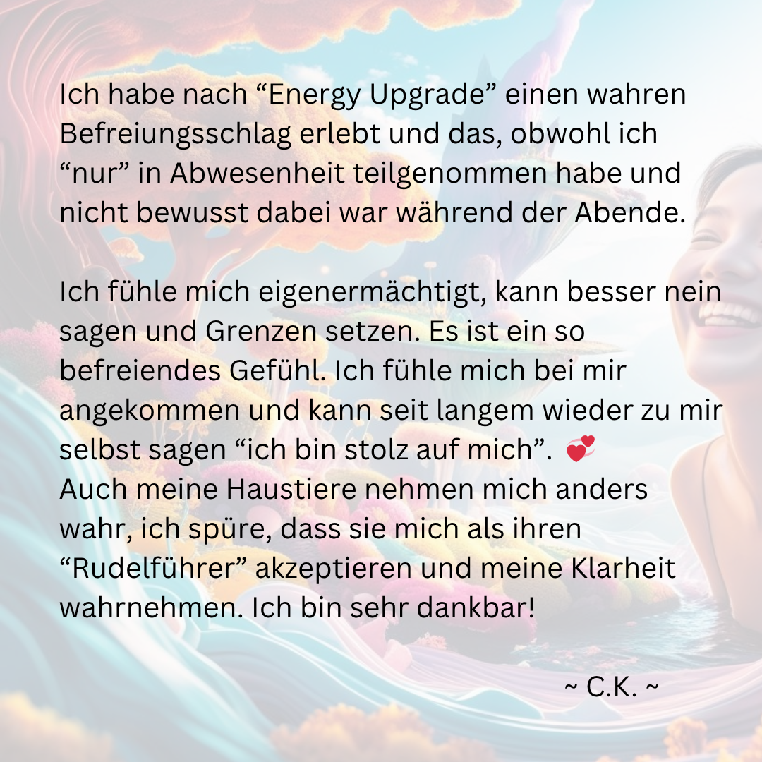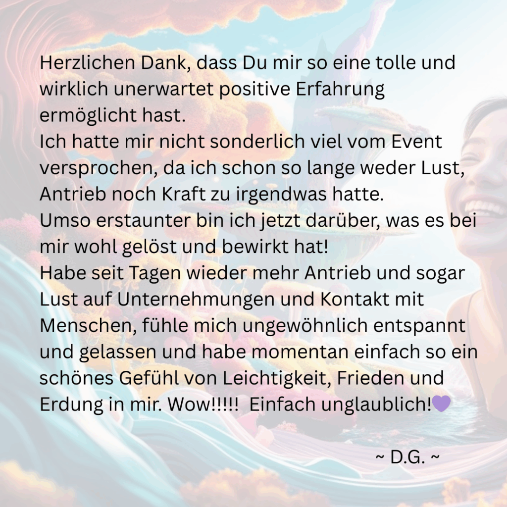 Du wirst von energetischen „Altlasten“ befreit und Deine Energie wird auf ein spürbar neues Level angehoben.