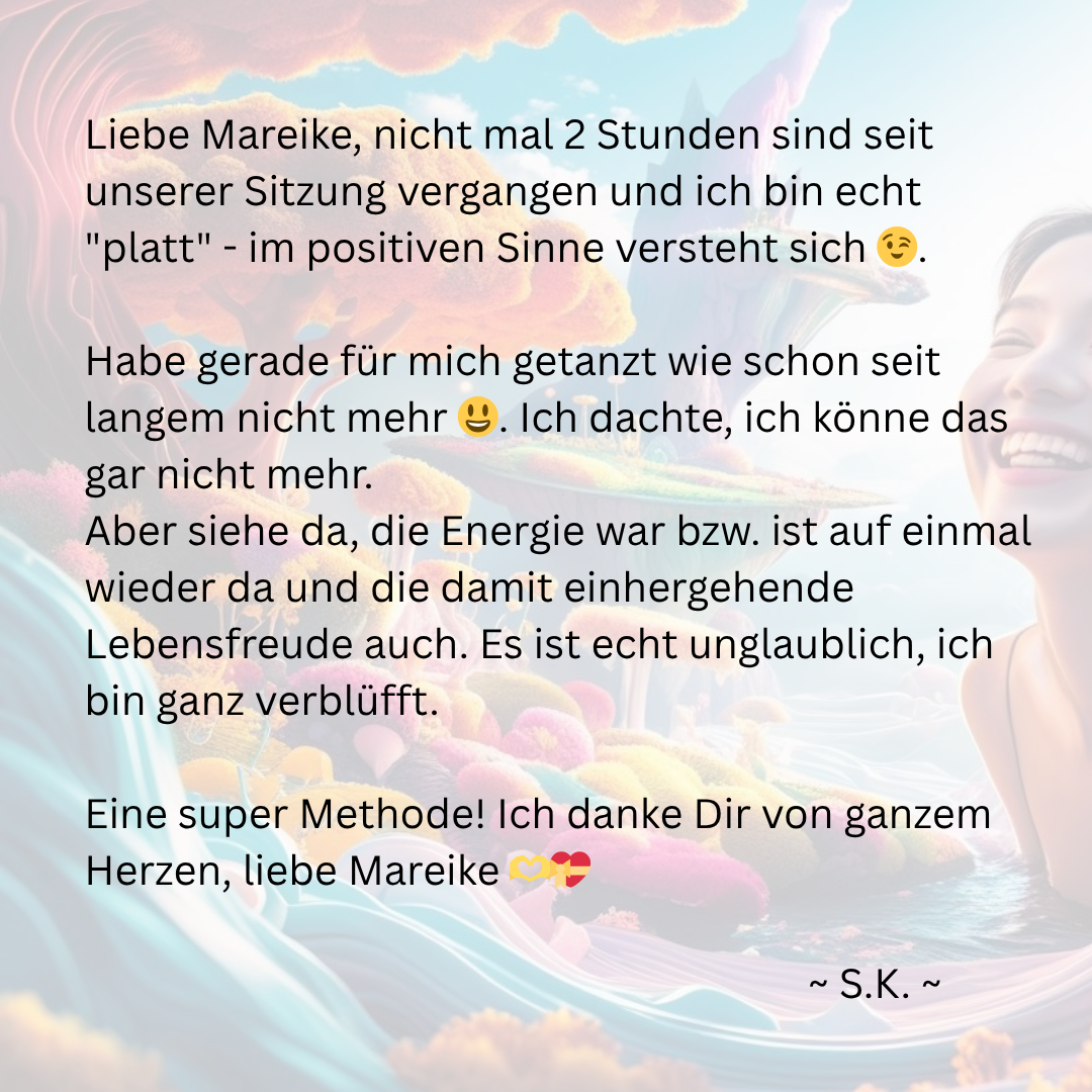 DISCLAIMER: Mareike Franz informiert und unterstützt Teilnehmer gemäß ihrer persönlichen und intuitiven Wahrnehmung. Sie gibt keine Heilversprechen, Geldversprechen oder Diagnosen ab und ersetzt weder Arzt noch Psychologen.