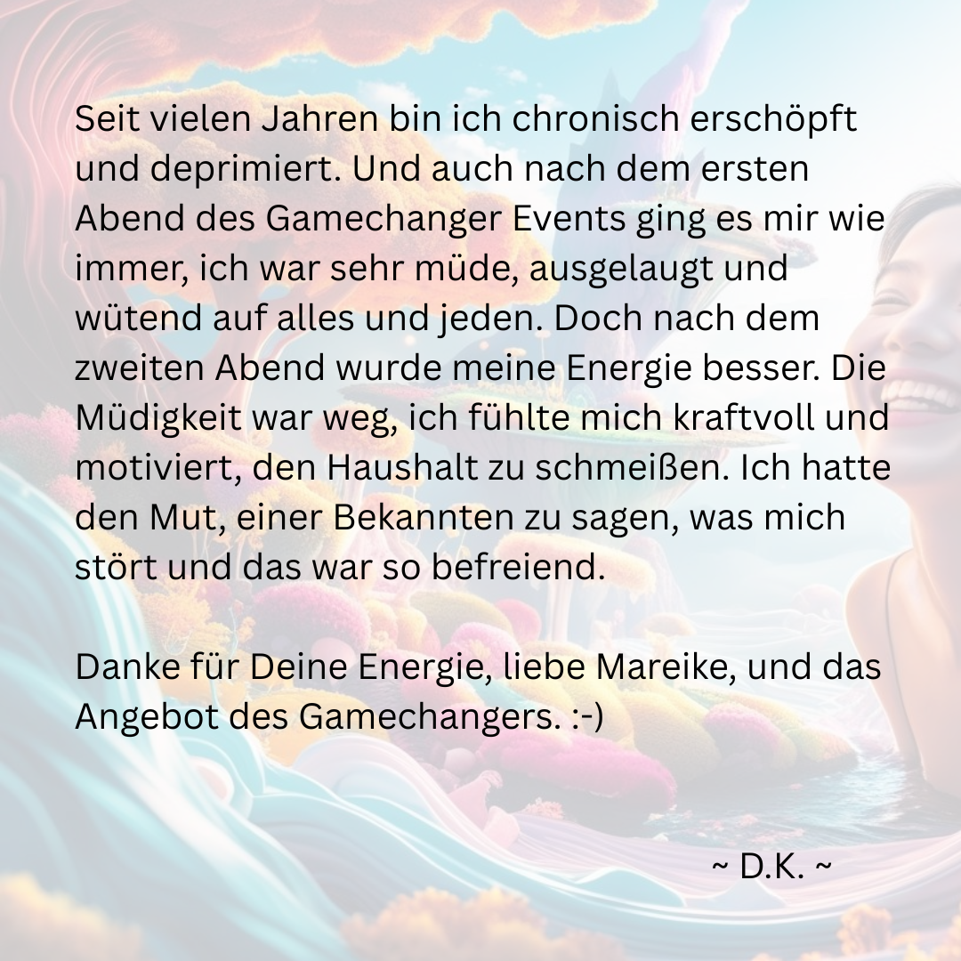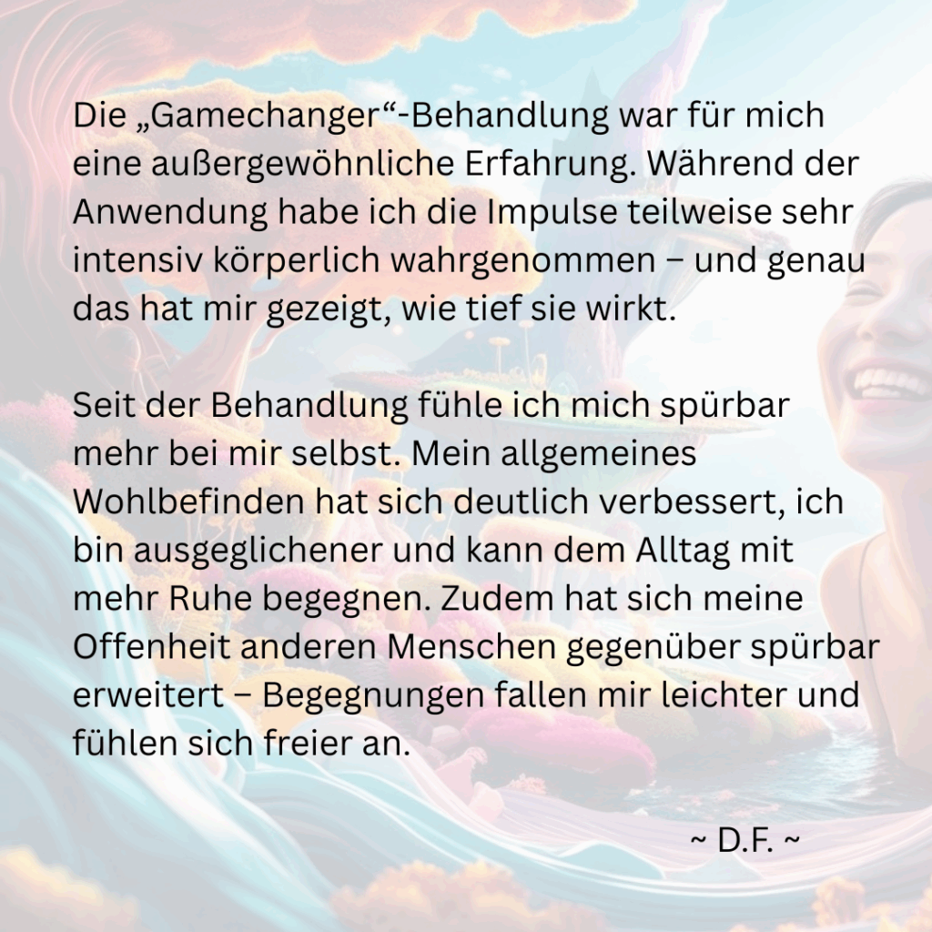 Die Kombination der Methoden, die im Gamechanger angewendet werden, hat sich u.a. auch gut bewährt bei Allergien, Unverträglichkeiten, Stress, Migräne, Ängsten, Drama, Trauma, Erschöpfung, Schmerzen usw.