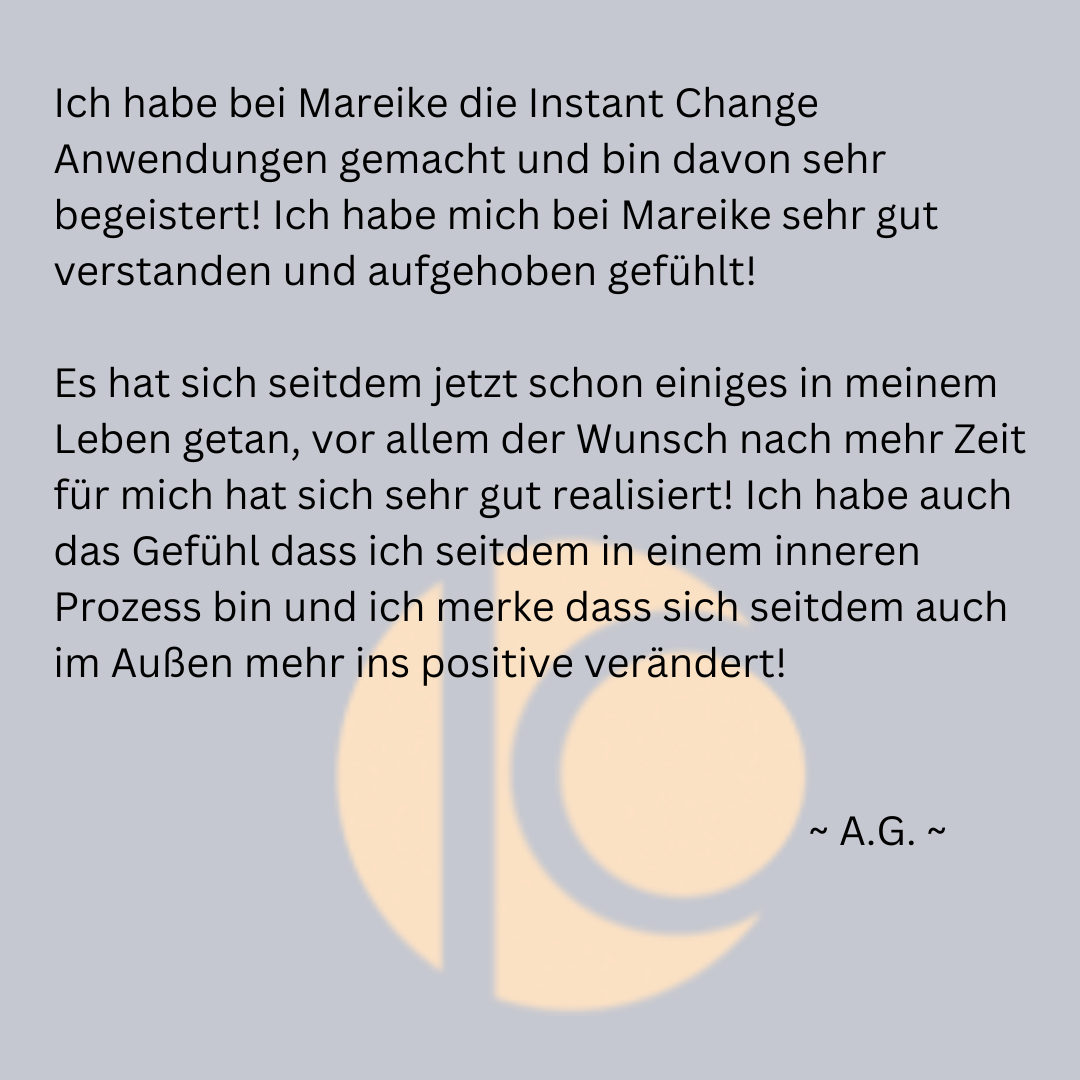 5 gute Gründe, weshalb Du bei mir Instant Change Anwendungen buchen solltest, findest Du in diesem Blog-Artikel.