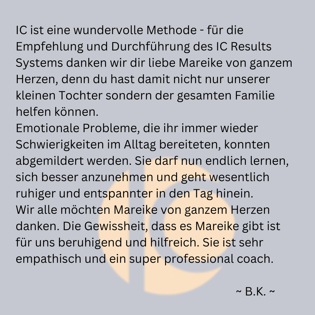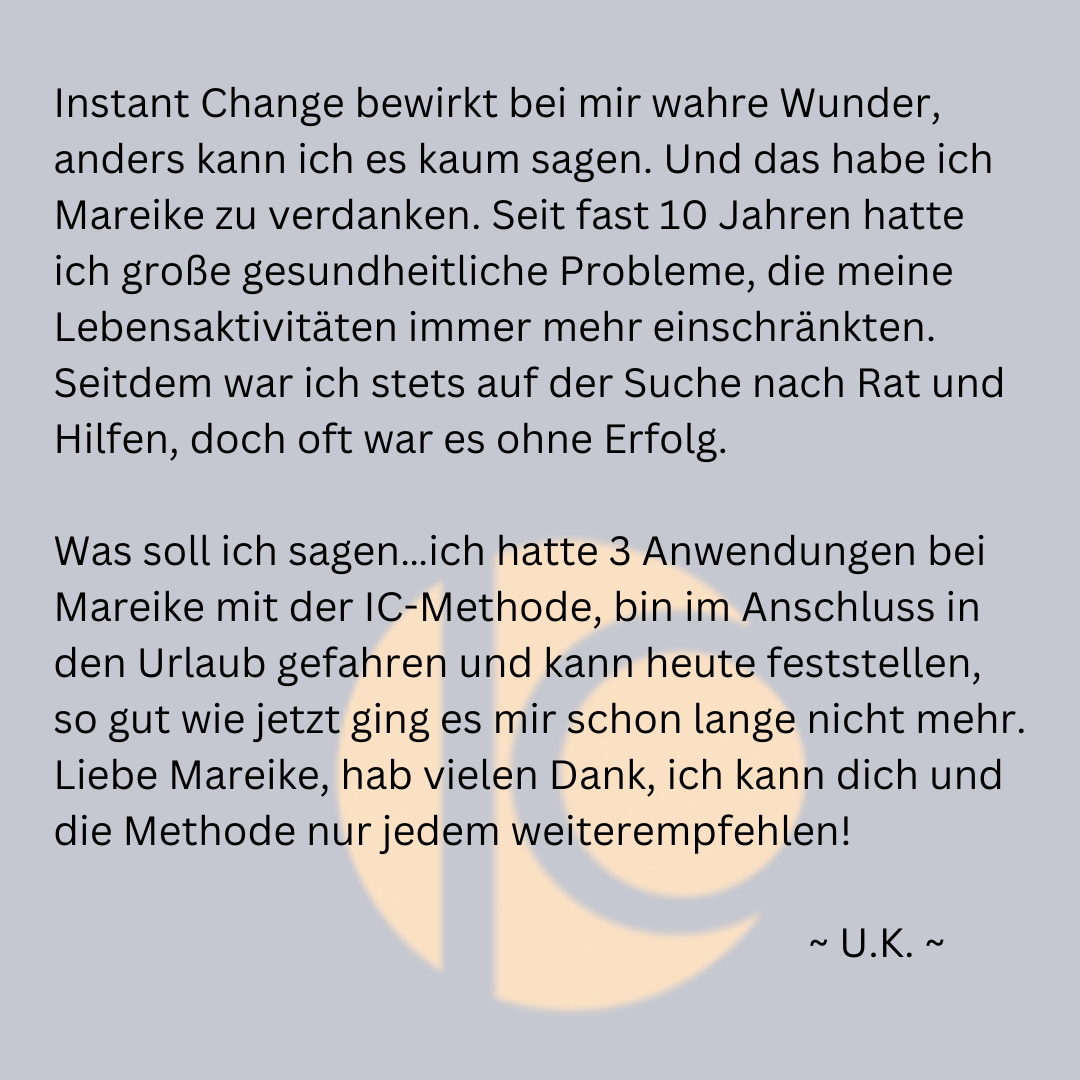 Ich selbst bin so begeistert von IC, dass ich nicht nur Instant Change Professional bin, sondern auch die Zusatzausbildungen „Instant Change Master“, „IC Systemic“, „IC Next Level“ und seit neuestem „IC Clean Body“ absolviert habe.